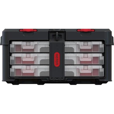 O Organizador Keter Stack & Roll com 3 recipientes removíveis e conectáveis é perfeito para artesãos, profissionais e adeptos do faça você mesmo que precisam de mobilidade e eficiência na hora de guardar e transportar itens.