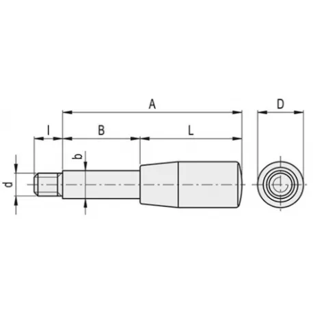 Braço alavanca com haste em aço carbono e manípulo em baquelite na cor preta. Fonte de imagens e desenhos técnicos: Elesa+Ganter.