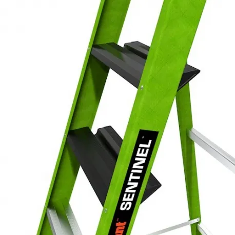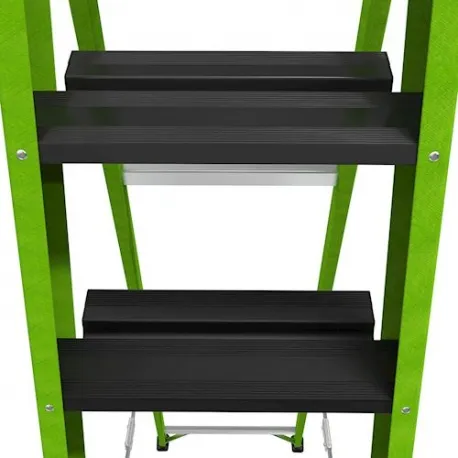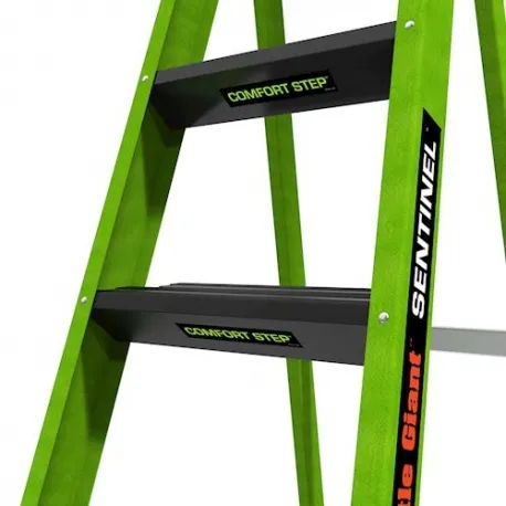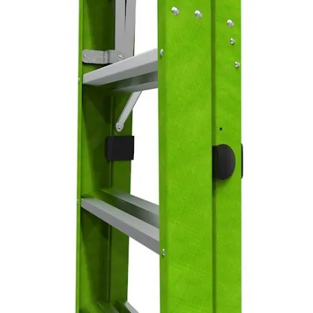 Nossa fibra de vidro verde High-Viz é leve e não condutiva. A vibrante cor verde comprovadamente aumenta a visibilidade, evitando ferimentos causados por pessoas ou objetos que batam na escada enquanto ela está em uso. O Sentinel é uma excelente escada versátil para tarefas em casa e em trânsito.