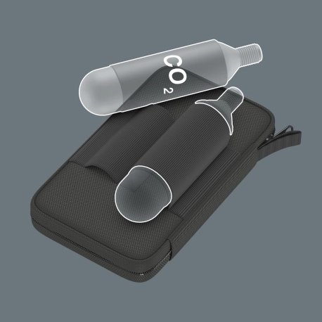 Conjunto de ferramentas para bicicleta com catraca, brocas, soquetes e uma chave de fenda para fixação de brocas no compacto Tool-Check. Perfeito como um companheiro universal para uma infinidade de aplicações de parafusamento. Um extra adicional: o conjunto vem com duas bolsas - uma bolsa maior para o conjunto completo de ferramentas e uma pequena bolsa macia para guardar as ferramentas com segurança no bolso da camisa quando você estiver em movimento. A bolsa macia tem alças adicionais para segurar dois cartuchos de CO2 (os cartuchos não estão incluídos). Com